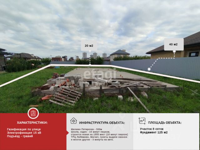 Продаю участок в поселке Южный. Залита плита 95 кв. М. Участок в центре, рядом вся инфраструктура. Бетонная дорога, угловая, с проектом и. 500 квадратов участок. Есть свет 15 квт, три фазы, есть газ. Вода.10 минут до торгового центра Красная площади. 20 минут на автомобиле до центра Краснодара.