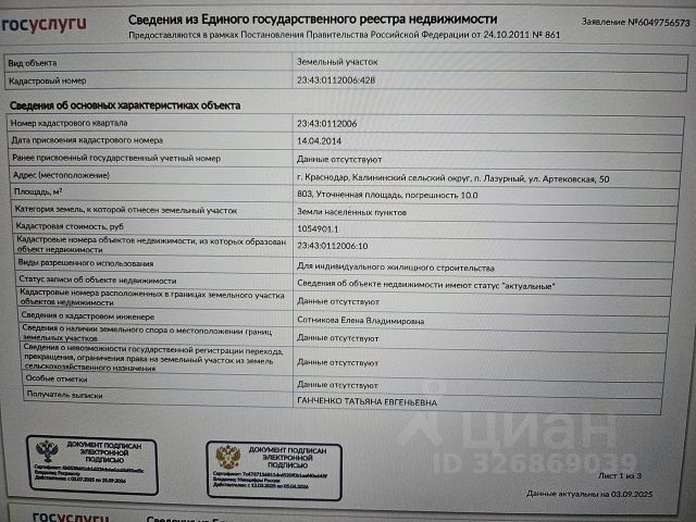 Продается З/У, п. Краснодарский, размеров 20х40 м, ровный, плюс придомовая территория 4м. Широкая улица, дорога отсыпана гравием. Электрофикация - 15кВТ 3 фазы. ГАЗ по улице, подключение по заявлению в течении 3-х месяцев. На участке уже возведен фундамент площадью 125 м2., входит в стоимость! Инфраструктура: Магазин Пятерочка на соседней улице (около 500м), школа, садик, ТКЦ, магазины, Екатериненская клиника, пекарни, кафе, парковая зона и т.д до 5 минут на авто или 15-20 минут пешком. Район застраивается, развивается, цена на з/у и дома постоянно растет. Место идеально подходит для строительства частного дома, для кто ценит уединенность и одновременно быть рядом с центром активной жизни.. Дополнительно оплачивается комиссия с покупателя. Код пользователя: 159052 Номер в базе: 6691809 Земельный участок в хуторе Карла Маркса Динского района.