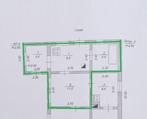 Долевое участие земельного участка и дома расположенного на нем, Ваша часть составляет 14,35 соток, геометрия участка заштрихованная зеленым. От дома Вам достается четыре помещения, обведены зеленым на картинке. Для временного пребывания пойдет, а дальше уже и свой построите. Есть электричество, газ. Вода из скважины, требуется насос поставить. Писать можно в любое время, звонить прошу после 18:00.