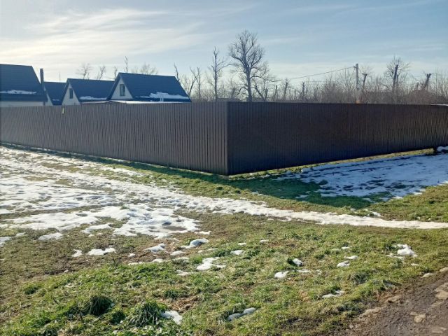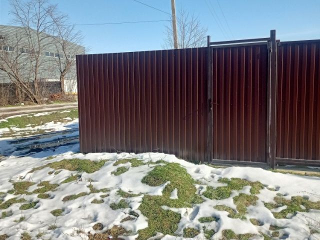 Дом расположен на 4 сотках земли, назначения СНТ, участок огорожен по периметру забором, с фасадной стороны — кирпичные колонны, евроштакетник, откатные ворота, калитка, фасадная подсветка забора и самого дома.