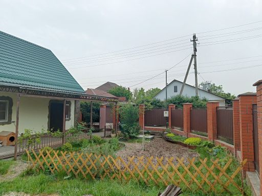 Дом расположен в 6 м от красных линий, можно припарковать 3 автомобиля внутри. Дом расположен так, что участок можно разделить на два отдельных участка по 4 сотки и построить второй дом с выходом на восточный фасад!
