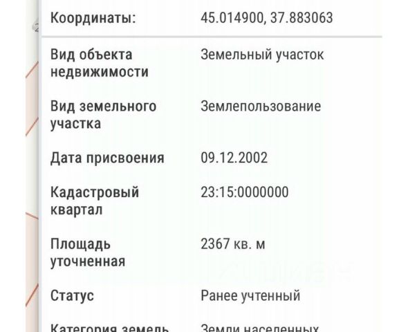 Продается участок 23,67 сот. Все уточнения по телефону. Торг Кадастровый 23:15:0413031:10