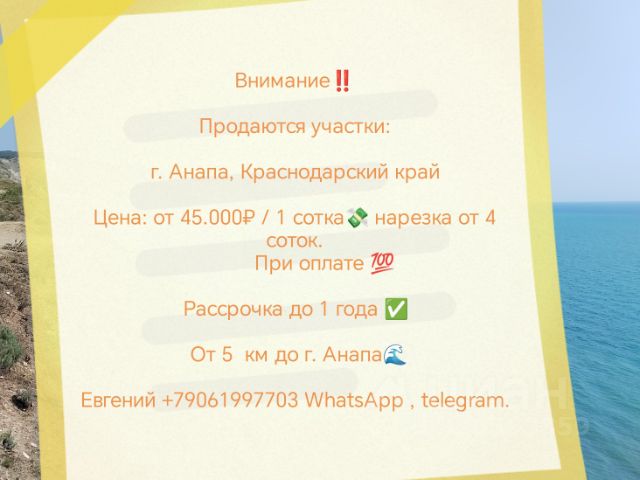 Лот 5671 Земельный участок -15 соток в х. Шептальском Крымского района. Об участке: 15 соток земли, фасад 30 м. Разрешённое использование -ЛПХ Кадастровый номер :23:15:0933001:96 Коммуникации: электричество, вода - по улице; газ- по меже О локации: В посёлке есть : продуктовые магазины, детский сад ,в школу детей возит школьный автобус, регулярное транспортное сообщение с Крымском. До г. Крымска - 11 км О сделке: без обременений; 1 собственник; любая форма расчёта; Звоните, пишите, будем рады ответить на все ваши вопросы! #Продажа#покупка# аренда объектов жилой и коммерческой недвижимости/ #Юридическое сопровождение сделок/ #Помощь в получении ипотеки/ #Межевание #раздел участка/ #Купить_участок #участок_на_юге# земля_в_Краснодарском_крае/ Больше предложений смотрите на сайте "ЭВРИКА-КРЫМСК"