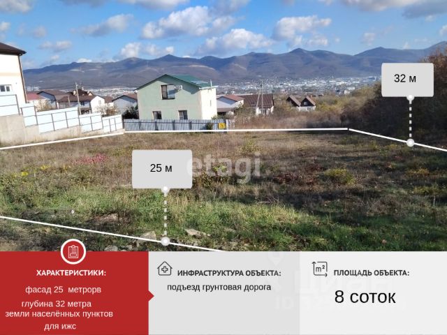 Земельный участок 8 соток, правильной формы с фасадом 25 метров, глубиной 32 метра. Ровный, с двух сторон есть забор от соседей. В перспективе планируется газ. Отличное расположение, тупиковая улица, подъездные пути хорошие. Можно построить дом по вашему проекту, размеры участка позволяют распланировать место где будет стоять дом. Так же можно размеживать по 4 сотки и построить два дома. Хорошие соседи.. Дополнительно оплачивается комиссия с покупателя. Код пользователя: 90688 Номер в базе: 8333474