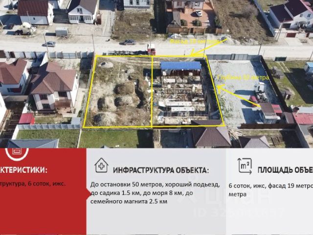 В продаже участок 5.6 соток, фасад 20м, торец 26м В пешей доступности остановки общественного транспорта и магазины, школа и дет сад в 10 минутах езды Участок можно приобрести как за наличные, так и в ипотеку При покупки участка юридическое сопроождение, ипотечная консультация и проект дома-в подарок Так же возможно приобретение с строительством под подряд Звоните, посмотреть можно в любое время. Дополнительно оплачивается комиссия с покупателя. Код пользователя: 165457 Номер в базе: 8375547