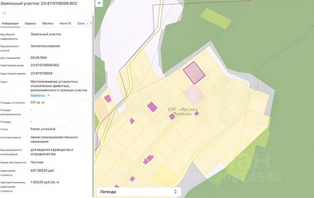 Продается земельный участок площадью 16 соток в СНТ Лесная Поляна, г. Новороссийск. Фасад участка составляет 65 метров, что открывает широкие возможности для строительства. Участок огорожен, проведено электричество, соседи проживают круглый год. На участке имеется дом. Месторасположение участка обладает рядом преимуществ. Одним из них является прекрасный вид на окружающую природу, ведь участок окружен лесом. В 10 минутах езды находится известный винодельческий комплекс Шато Пино, а до пляжа Широкая Балка можно добраться за 15 минут.