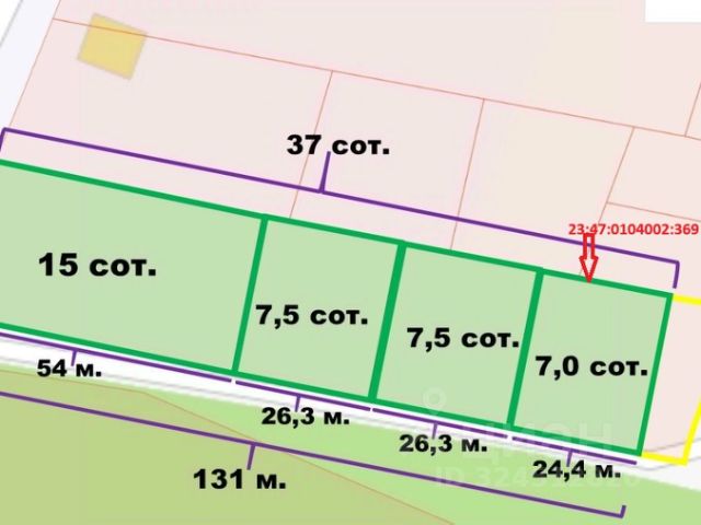 Продам большой земельный участок прямоугольной формы на возвышенности с живописным видом на горы, виноградники и станицу для строительства дома. Характеристики объекта: 1. Кадастровый номер: 23:47:0101096:36 2. Категория земель: Земли населенных пунктов. 3. Вид разрешенного использования: для ведения личного подсобного хозяйства. 4. Площадь: 1400 кв.м. (14 соток, 40*35 м). 5. Место расположения: Краснодарский край, г. Новороссийск, ст-ца Натухаевская, ул. Раевская. Около 20 км до Новороссийска и столько же Анапы. Натухаевская это крупная станица, расположенная между Новороссийском и Анапой. Станица имеет развитую инфраструктуру (школы, магазины, рынок, амбулатория, дом культуры, парк). 6. Коммуникации: электричество 15 кВт, вода (скважина, глубинный насос, расширительный бак, выполнена разводка), септик, газ по границе участка. Преимущества объекта: 1. Участок угловой. К нему можно подъехать с двух разных улиц Хлеборобов и Раевской. 2. Высажены плодоносящие фруктовые деревья и молодые сосны. 3. В 2021 году выдано разрешение на строительство (уведомление о строительстве) двухэтажного дома. Срок действия уведомления о строительстве 10 лет. 4. Подготовлена площадка под фундамент дома размером 9*8 м (песчаная подушка, опалубка). Имеется арматура 2 тонны. 5. По границе расположены столбы с сеткой-рабицей. 6. На участке возведено НЕкапитальное строение размером 6*4 м: каркасник с утеплением 150 мм, снаружи обшит фальшбрусом. Внутри выполнена отделка. Полностью благоустроен. Подведены электричество, вода, установлены бойлер, фильтры, расширительный бак, унитаз, встроенная кухня. Пол с подогревом, покрыт керамогранитом. В строении располагаются три помещения: кухня комната отдыха, предбанник и баня. Строение полностью готово к эксплуатации и комфортному проживанию. Подготавливалось к проживанию на время строительства и дальнейшей эксплуатации в качестве бани. 7. Отличные, добрые и дружные соседи. Земельный участок продается в связи с переездом в другой регион.
