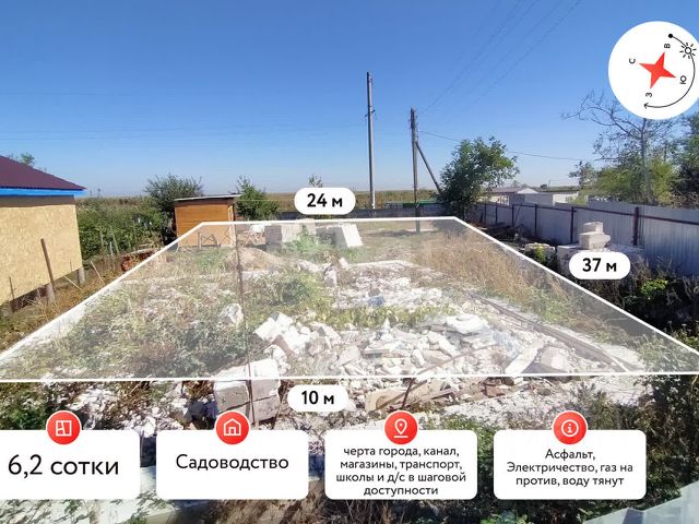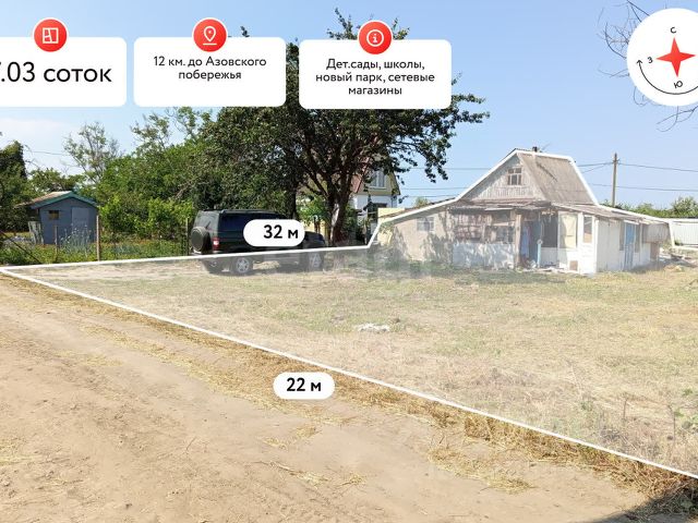 Участок площадью 7.3 соток, правильной прямоугольной формы, ровный, находится в неподтопляемой зоне, на жилой улице.