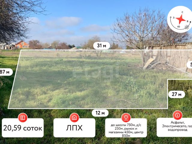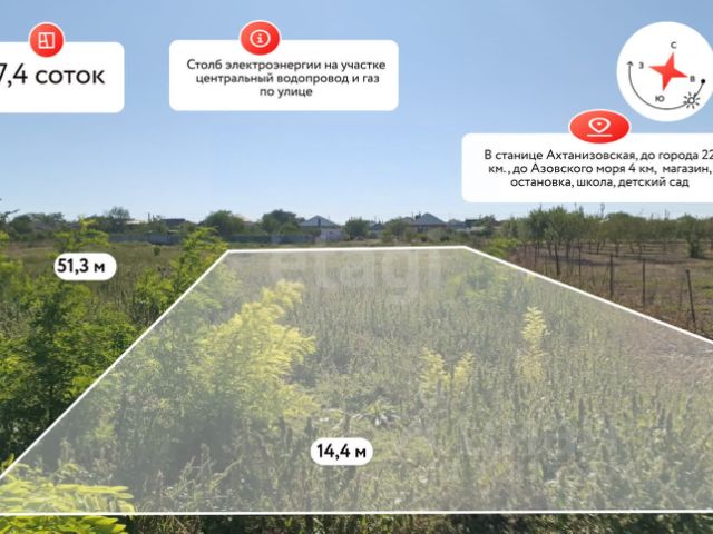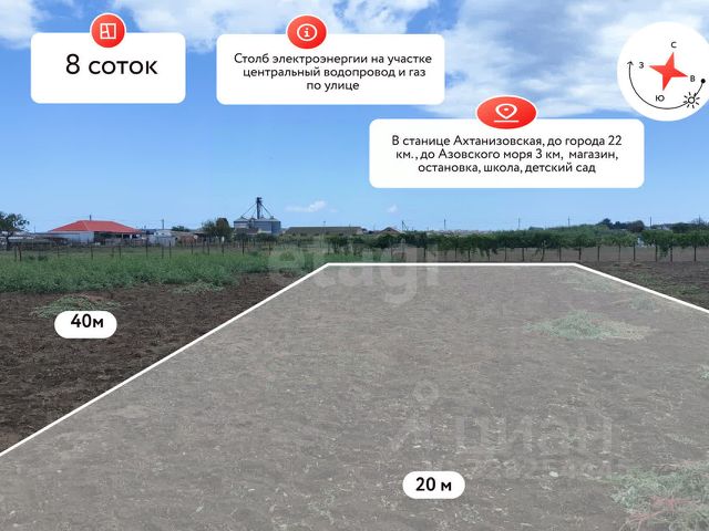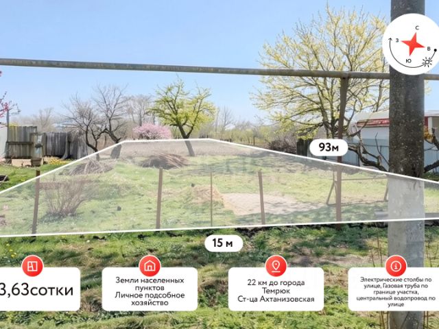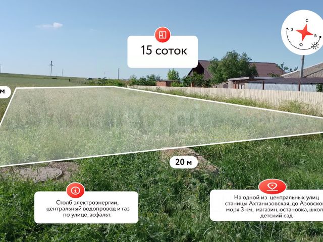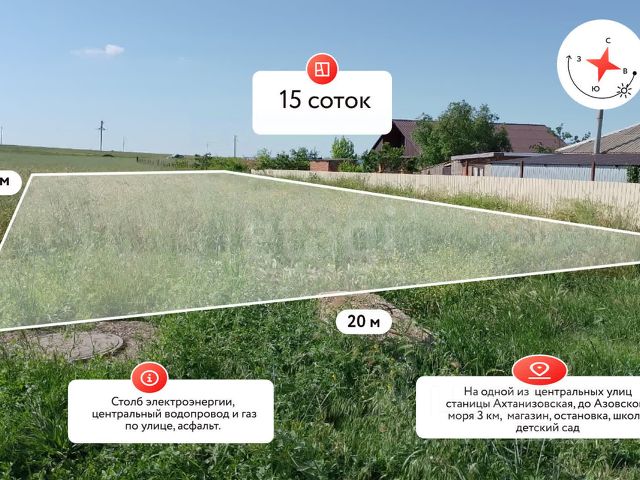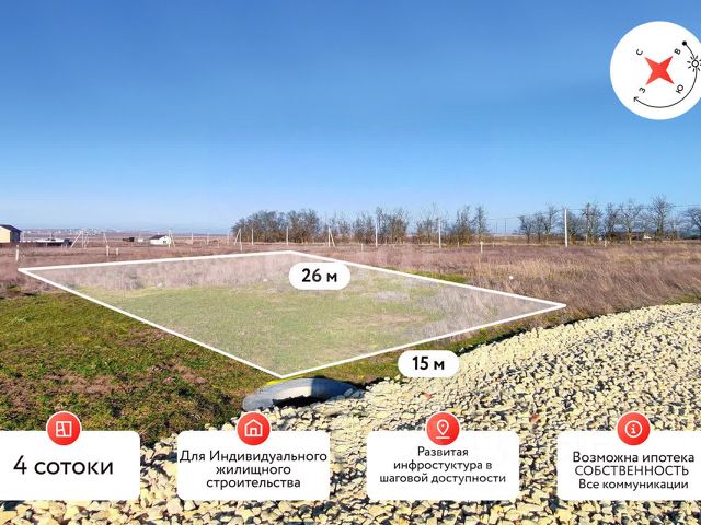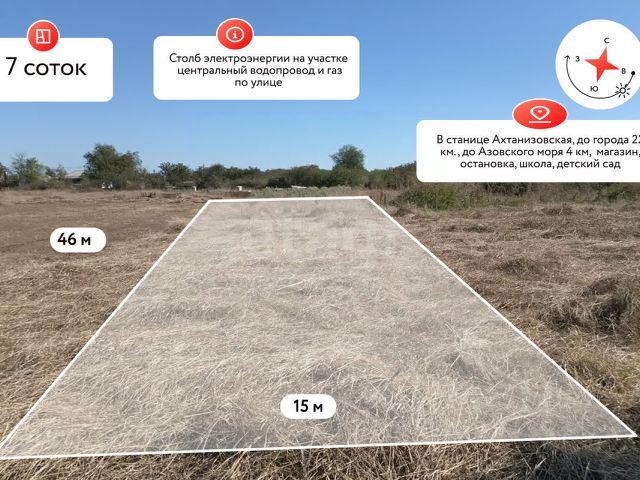 Покупай сейчас - плати потом! На данный объект доступна рассрочка на выгодных условиях Продаю участок. Проект дома в Подарок совершенно бесплатно!!!! Участок идеально подходит людям желающим инвестировать в землю, а может Вы ищите участок для строительства загородного дома сезонного проживания!? Характеристики: Это участок идеальный вариант! Площадь 4 сотки, Фасад участка 15 метров , глубина участка 26 метров, ровный, правильной прямоугольной формы. Развернут фасадом на восход, Вас будет радовать рассвет изо дня в день! Коммуникации у Вас уже есть! Это подведенные линии водоснабжения и электроснабжения. На локацию заведена газификация и по программе ее подведут бесплатно на участок!!! Инфраструктура: В станице есть Все что может понадобиться в повседневной жизни!!! Школа в 1,5 км.Детский садик 1 км.Амбулатория 1,5 км.Сетевые магазины 1.7 км.До центральной улицы станицы 1 км Транспортная доступность: До Темрюка 28 км До Анапы 56 км. До Краснодара 175 км До Крыма 60 км До Федеральной трассы А-290 8,5 км. Юридическая составляющая: Продажа от СОБСТВЕННИКА Проведено межевание Правоустанавливающие документы в наличии Звоните сейчас и Я все организую!!!. Дополнительно оплачивается комиссия с покупателя. Код пользователя: 187299 Номер в базе: 9257729 Продам земельный участок в станице Ахтанизовская Темрюкского района.