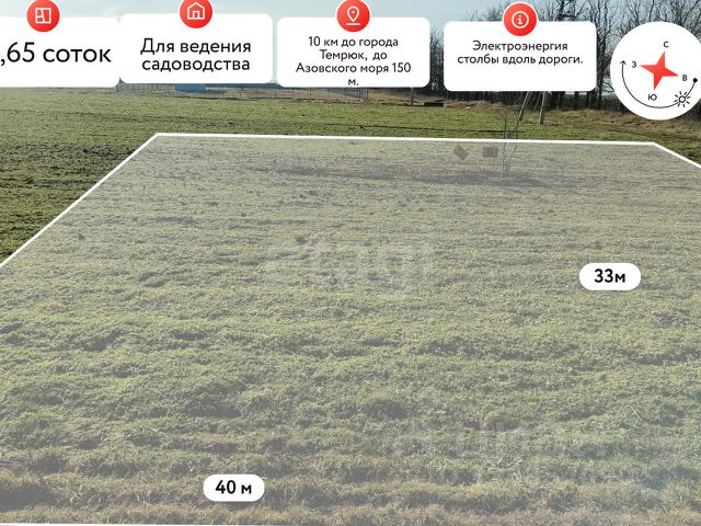 Продам участок в курортной станице на берегу Азовского побережья! Участок уникален для тех, кто ищет тихое место для отдыха от шума и суеты. Представьте: из окна вашей спальни открывается бескрайний вид полей с мерцающей гладью Ахтанизовского лимана. Это место, где, выйдя поутру и спустившись на 50 шагов вниз, вы закидываете удочку, наблюдаете за поклевкой и тихо упорядочиваете свои мысли. Здесь все встает на свои места. Характеристики участка: • Площадь: 5,4 соток • Размеры по фасаду: 20 метров • Глубина: 27 метра • Ровный, правильной формы, в окружении жилых домов На участке можно построить дом площадью 100 кв.м. Организовать парковочное место, не задействуя полезную площадь, благодаря большой придомовой территории. Вместо гаража вы можете установить баню-бочку размером 4 на 6 метров. Плодовые деревья: яблоко, персик, инжир и черешня радуют вас своими витаминами. В непосредственной близости проходит канал, с которого открывается выход в Ахтанизовский лиман. И рядом автобусная остановка , ведущая в оба направления. Коммуникации: Рядом проходят все центральные коммуникации: газификация, водоснабжение и электроснабжение (соседи подключены). Инфраструктура: В станице развита инфраструктура: • До школы: 900 метров • До детского сада: 1 км • До моря: 2 км • Сетевые и строительные магазины в пределах 1,52 км Достопримечательности: Все в доступности: благоустроенные пляжи, места культурного отдыха с аттракционами, кафе, бары и рестораны. Голубицкая является популярным курортом с развитой туристической инфраструктурой. Место с мягким климатом и длительным купальным сезоном привлекает наличием песчаных пляжей, теплым Азовским морем, а также лечебными грязями и разнообразными развлечениями: аквапарками, зоопарками и долиной лотосов. Местоположение и расстояние: • Удобная транспортная развязка Краснодар - порт Кавказ • До Анапы: 70 км • До Краснодара: 150 км • До Темрюка: 5 км • До Крыма: 80 км Юридическая составляющая: • Продажа от собственника • Правоустанавливающие документы в наличии • Возможность продажи в ипотеку • Проведено межевание Звоните! Это идеальное место для вашего дома, вдали от городского шума!