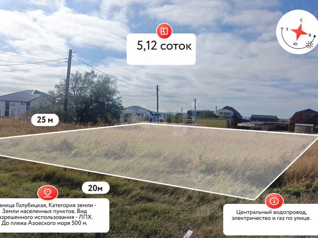 Покупай сейчас - плати потом! На данный объект доступна рассрочка на выгодных условиях Продам земельный участок на первой линии Азовского моря! Характеристики участка: Весь массив состоит из четырех земельных участков, общей площади 104.3 сотки. Фасад участка 48.5 метров, глубина 216.5 метров. 58.19 соток в собственности (Собственность) 6.17 соток в собственности (Собственность) 28.86 соток в долгосрочной аренде до 2069 года. 11.08 соток ежегодная аренда (ВРИ - Для эксплуатации базы отдыха) Зона СК. На участках по ВРИ: Туристическое обслуживание. Размещение пансионатов; Туристические гостиниц; Кемпингов; Домов отдыха, не оказывающих услуги по лечению, а также иных зданий, используемых с целью извлечения выгоды из предоставления жилого помещения для временного проживания в них; Размещение детских лагерей. Максимальное количество возводимого здания в 5 этажей. Максимальная высота объектов капитального строительства не более 20 метров. Коммуникации: Подключено центральное водоснабжение Подключено электроснабжение в 40 кВт. Расположение: Голубицкая является популярным курортом с развитой туристической инфраструктурой.Место с мягким климатом и длительным купальным сезоном. Привлекает наличием песчаным пляжам, теплым Азовских морем, а также наличием лечебных грязей и разнообразных развлечений. это аквапарки, зоопарки и долина лотосов. Участок находится на первой линии и имеет собственный выход к морю, что имеет первоочередную привлекательность! Расположение на центральной улице ведущей к пляжу. Ежегодный туристический поток более 400 000 человек. Юридическая составляющая: Отсутствие обременений (арестов), споров и судопроизводств. Вся стоимость в договоре.Продажа от физлица. Звоните и инвестируйте! Возможно обсуждение ценовой оферты! . Дополнительно оплачивается комиссия с покупателя. Код пользователя: 187278 Номер в базе: 9561783