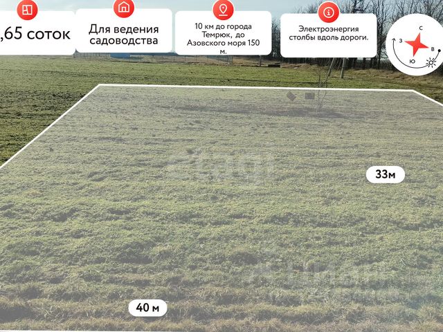 Объект 174781. УЧАСТОК У САМОГО МОРЯ!!! ИЖС!!! 500 метров ДО ПЛЯЖА!!! САМАЯ ПРИВЛЕКАТЕЛЬНАЯ ЦЕНА!!! Продается участок на берегу Азовского моря!!! * Чистый, песчано-ракушечный пляж в 5 минутах * Угловой участок. Не топит * Электричество по границе участка * Рядом улица Курортная, на которой расположены все необходимые для отдыха заведения и развлечения * В поселке есть школа, детский сад, магазины все необходимое для комфортной жизни * 40 км до Тамани и Крымского моста, 20 км до Черного моря, 3 до Темрюка * Тихое и уютное место для жизни у моря Успейте приобрести себе участок на берегу моря по выгодной цене!!!