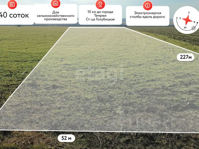 Земельный участок площадью 1,4 гектара расположен в станице Голубицкой Темрюкского района, в границах населенного пункта. Категория — земли сельскохозяйственного назначения с видом разрешенного использования для сельскохозяйственного производства. Ключевое преимущество — выгодное расположение вдоль федеральной трассы Темрюк-Керчь, обеспечивающее отличную транспортную доступность и высокую проходимость, что ценно для логистики. Участок имеет удобную конфигурацию с фасадом 52 метра и глубиной 227 метров, что оптимально для организации производственных процессов, хранения или выращивания культур. Территория непосредственно граничит с действующими сельхозугодиями, включая виноградники, что подтверждает плодородность почв и благоприятные агроклиматические условия региона. Близость к инфраструктуре станицы упрощает обеспечение объекта ресурсами и персоналом. Участок готов к использованию и представляет собой стратегический актив для развития агробизнеса, создания фермерского хозяйства или долгосрочных инвестиций в землю перспективного курортного района Краснодарского края.. Дополнительно оплачивается комиссия с покупателя. Код пользователя: 90990 Номер в базе: 10956936