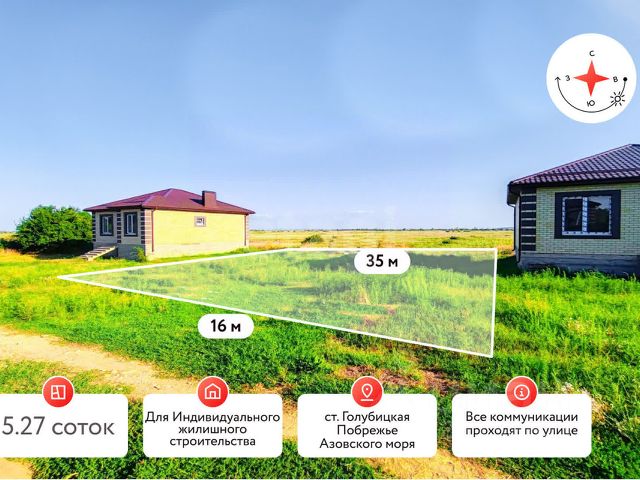 Продается уникальный участок в живописной станице Голубицкой площадью 5 соток, который идеально подходит для строительства вашего дома мечты! Участок находится в зоне с разрешенным использованием для индивидуального жилищного строительства, что открывает перед вами широкие возможности для реализации ваших идей. Все необходимые коммуникации — центральное водоснабжение, газ и электричество — проходят прямо по улице, что значительно упростит процесс подключения. Вы сможете сосредоточиться на строительстве и обустройстве своего нового жилья, не беспокоясь о сложностях с инфраструктурой. Кроме того, вы будете наслаждаться удобством, так как вся необходимая инфраструктура находится в шаговой доступности. Магазины, кафе, школы — все это рядом, что делает жизнь комфортной и удобной. А до моря всего 1,5 км! Представьте, как приятно будет проводить время на пляже, наслаждаясь солнцем и морским бризом. Автобусная остановка находится всего в 100 метрах от участка, что обеспечит вам легкий доступ к общественному транспорту и возможностям для путешествий по региону. Не упустите шанс стать владельцем этого замечательного участка в Голубицкой! Звоните прямо сейчас, я с радостью отвечу на все ваши вопросы и организую оперативный показ. Ваш идеальный дом ждет вас! . Дополнительно оплачивается комиссия с покупателя. Код пользователя: 90990 Номер в базе: 4882668