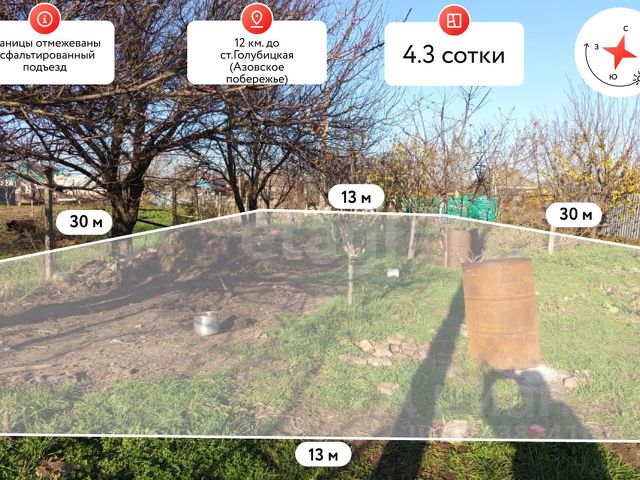 Продается участок. 400кв.м На что стоит обратить внимание: • Участок находится на возвышенном месте, это преимущество открывает изумительный вид с участка на природу и лиман, а так же спасает ваш будущий дом от возможных подтоплений •Подъездные пути к участку-асфальтированные. •Все коммуникации проходят по меже (газ, центральная вода, интернет и электричество) • На участке растут плодовые деревья, можно уже собирать урожай. • Документы полностью готовы к продаже, юридически чистые. Оформление возможно в один день. •в ста метрах от участка располагается рыболовный канал и охота по пропускам!! Так же можем построить на этом участке жилой дом!! ID объекта: 968931