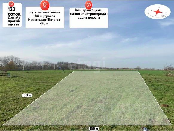 Предлагается к продаже земельный участок площадью 1,2 га в станице Курчанская. Участок обладает разрешенным использованием для сельскохозяйственного производства, что открывает широкие возможности для организации рентабельного фермерского хозяйства, включая возведение необходимых зданий и сооружений. Уникальность локации заключается в непосредственной близости к водным ресурсам — всего 80 метров отделяют участок от береговой линии Курчанского лимана, что создает исключительные условия для развития аквакультуры и рыбоводства. Земля также идеально подходит для садоводства и других агропроектов. Участок обеспечен доступом к электричеству — линия электропередач проходит вдоль дороги. Транспортная доступность высокая, что обеспечивает удобную логистику для бизнеса. В шаговой доступности сосредоточена вспомогательная инфраструктура: станция технического обслуживания, автомойка и гостиница, что добавляет практичности для коммерческого использования. Объект продается напрямую от собственника, вся документация подготовлена для быстрого и безопасного проведения сделки. Это готовое решение для запуска или расширения сельскохозяйственного бизнеса в стратегически выгодном месте. . Дополнительно оплачивается комиссия с покупателя. Код пользователя: 179400 Номер в базе: 10437174