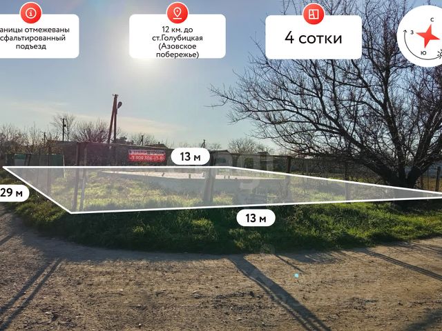 Продается участок в станице Курчанская площадью 17 соток, который станет идеальным местом для вашего нового дома или дачи! Участок имеет внушительные размеры: ширина фасада 25 метров , длина 75 метров.На территории расположен старый домик, который можно использовать как временное жилье или для хранения инструментов. Все коммуникации уже подведены: вода, электричество и газовая труба находятся на границе участка. Этот участок идеально подходит для любителей природы и активного отдыха. Всего в 1 км расположен Курчанский лиман — отличное место для рыбалки . В шаговой доступности находятся школа, детский сад, магазины и остановка общественного транспорта, что делает жизнь здесь комфортной и удобной. Кроме того, благодаря близости к объездной дороге, вы сможете быстро добраться до Азовского и Черного моря, а также до живописного Крыма. Не упустите шанс стать владельцем этого замечательного участка! Здесь вы сможете создать свой уютный уголок, наслаждаясь всеми прелестями загородной жизни. Звоните прямо сейчас, чтобы узнать больше и организовать просмотр! . Дополнительно оплачивается комиссия с покупателя. Код пользователя: 179400 Номер в базе: 5854756