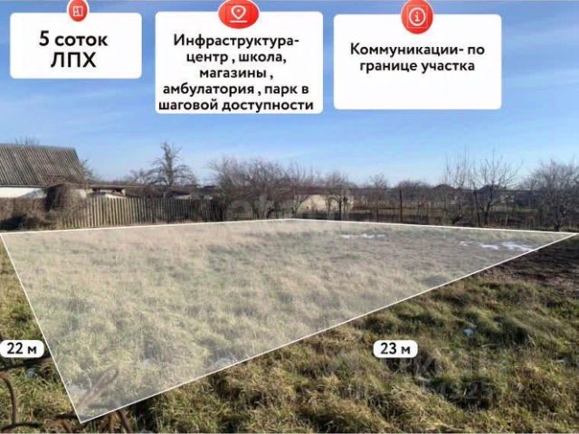 Участок площадью 5 соток правильной прямоугольной формы с фасадом 22 метра расположен в центральной части станицы Курчанская. Земля имеет разрешенное использование под ЛПХ и полностью подготовлена к строительству: все центральные коммуникации проходят непосредственно по границе. Участок продается напрямую от собственника, не имеет обременений, а полный пакет документов готов к быстрой сделке. Данный объект полностью соответствует требованиям программы "Семейная ипотека", что открывает возможность приобретения на льготных условиях для строительства собственного дома. Ключевое преимущество — развитая инфраструктура в шаговой доступности: общеобразовательная школа 20, детский сад 16, магазины "Пятерочка", "Магнит", "Чижик", аптеки, салон красоты, парк и стадион. При этом сохраняется отличная транспортная доступность: до побережья Азовского моря можно добраться за 30 минут, до Черноморского побережья — примерно за час. Это предложение представляет собой редкую возможность приобрести подготовленный участок в самом сердце станицы с полным набором коммуникаций и социальных объектов для комфортной жизни. . Дополнительно оплачивается комиссия с покупателя. Код пользователя: 179400 Номер в базе: 10928750