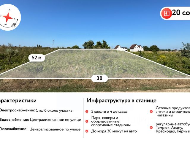 Покупай сейчас - плати потом! На данный объект доступна рассрочка на выгодных условиях !!!УЧАСТОК СО ВСЕМИ ЦЕНТРАЛЬНЫМИ КОММУНИКАЦИЯМИ!!! Высокое место. Участок в неподтопляемой территории. Идеальное место для строительства индивидуального жилого дома. Характеристики: Участок площадью 8,15 соток. Размерами по фасаду 16 метров, в глубину 50 метр. Ровный, правильной прямоугольной формы. Коммуникации: По улице, с фасада участка проходит линии Центральной газификации Водоснабжения. Столб электроснабжения рядом с участком. Рядом с домом живут соседи и уже возводится порядка пяти домов. Юридическая часть: Продажа от СОБСТВЕННИКА Проведено межевание Возможна продажа в ипотеку Правоустанавливающие документы в наличии В станице Старотитаровской есть вся необходимая инфраструктура: Детский сад, школа, 2 км Магазины Магнит и Пятерочка, 3 км Кафе и ресторан, хозяйственные 3 км Строительные магазины. 2 км В поселке много работы. Местоположение, расстояние и транспортная доступность: Трасса Краснодар - порт Кавказ в 7 минутах езды До Анапы 40 км До Краснодара 145 км До Темрюка 20 км До Крыма 80 км По вопросам приобретения и просмотра звоните! Возможна продажа в ипотеку.. Дополнительно оплачивается комиссия с покупателя. Код пользователя: 187292 Номер в базе: 9554458
