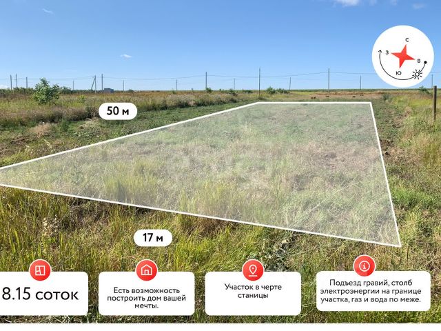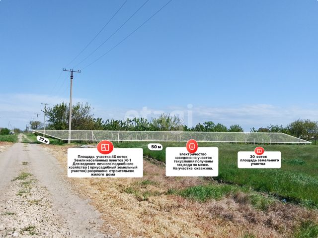В станице Старотитаровской продается земельный участок, площадью 10 соток. Фасад 13 метров. Длина вглубь 70 метров. Форма участка правильная прямоугольная. Категория - земли населенных пунктов, личное подсобное хозяйство. Посажена черешня и разработан, засажен участок. Газовая труба проходит по фасаду участка. Свет есть, централизованная вода проведена. Межевание проведено. Собственник один. Документы готовы к продаже.