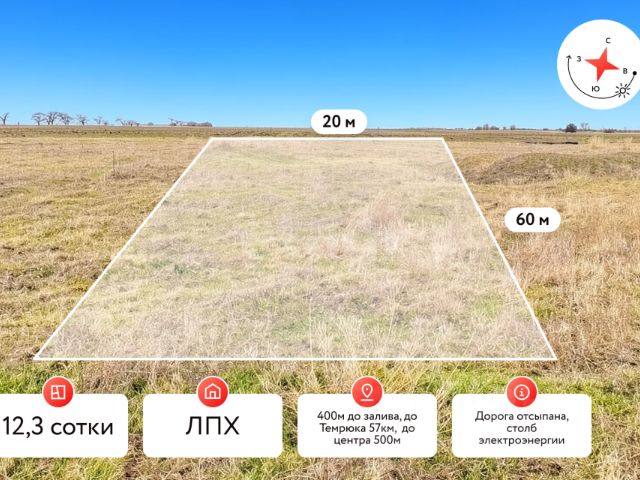 Последний участок на первой линии залива Азовского моря — всего 10 метров до воды Продаётся уникальный земельный участок 15 соток на самом берегу залива Азовского моря. Это последний свободный участок в этой локации, больше участков на первой линии здесь не продаётся. До воды всего около 10 метров, открывается красивый панорамный вид на залив. Место отличается особой атмосферой: тишина, чистый морской воздух и практически нетронутая природа. Здесь летают лебеди, а в море часто можно увидеть дельфинов. Удобное расположение: — около 40 минут до Анапы — около 3 часов до Краснодара Рядом с участком находится известная сыроварня и ресторан премиального уровня One Cheese место, куда приезжают специально за авторской кухней, свежими фермерскими сырами и блюдами, приготовленными из локальных продуктов. Такие участки появляются на рынке крайне редко. Недвижимость на первой линии моря всегда считается ценной и долгосрочной инвестицией. Преимущества участка: • Первая линия моря — около 10 метров до воды • Площадь участка — 15 соток • Угловой участок — удобный подъезд и больше пространства • Отсыпанная дорога — хороший подъезд к участку • Электричество заведено на участок (официальное подключение) • Газ и вода проходят прямо по участку • Интернет проходит по границе участка • Разрешение на строительство сроком на 10 лет — можно начинать строительство сразу • Участок полностью подготовлен для строительства дома у моря Это идеальное место для: — частной виллы или дома у моря — загородной резиденции — инвестиционного проекта — бутик-гостевого дома Редкое предложение: последний участок на первой линии залива. Подобные объекты появляются на рынке крайне редко и быстро находят владельца. Продажа напрямую от собственника, без риэлтора и без комиссии. Звоните или пишите расскажем подробнее и организуем просмотр.