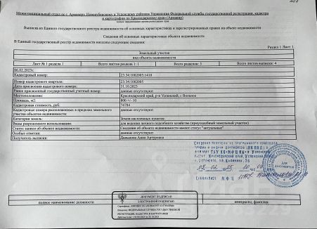 Купи себе кусочек рая! Продам земельный участок площадью 2912м² в 20км от города-курорта Лабинск - станица Вознесенская ул. Мира 182а, въезд со стороны ул. Соснова. Тишина, уют, спокойствие, свежий воздух, минимум соседей, а те что есть это милые пожилые пары. На участке плодородная почва и все блага цивилизации в 15 минутах езды (город-курорт Лабинск). В станице есть магазин магнит и магнит косметик, строительные магазины в шаговой доступности от участка, все коммуникации по границе участка. Участок реальный, я - единоличный собственник. На данном участке никогда никто не жил, вы получаете землю с чистой энергетикой. Вокруг деревья и сады. Уникальные туристические маршруты, нетронутая природа, озера и реки, вкусные фермерские продукты от частников и многое другое. Напишите мне в личку или позвоните и я расскажу почему именно это место лучшее для жизни. Помогу со строительством при необходимости и необходимыми разрешениями администрации. Цена на участок честная, т.к. это самый юридически чистый и прозрачный участок. Никаких подводных камней. 23:18:0407005:776 фото документов и видео участка по запросу.