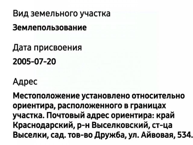 ИНДИВИДУАЛЬНЫЙ ПОДХОД К КАЖДОМУ КЛИЕНТУ! Кадастровый номер земельного участка 23:05:0602023:52. Земельный участок, о.п. 14,76 соток, расположенный в ст. Выселки по ул. Широкая. Размер участка 21,4*81,5 м.. Есть межевание. Заведено водо- и электроснабжение. Есть плодовые деревья, виноградник. Огород имеет выход к реке Журавка. На участке кирпичная летняя кухня, колодец, колонка для полива, уличные удобства. Металлопрофильный забор, ширина фасада 21,4 м.. Участок имеет правильную форму, что облегчает проектирование и строительство будущего дома. Земля ровная, поэтому вам не придется тратить дополнительные средства на выравнивание участка. Инфраструктура района развита, в шаговой доступности магазины различных групп товаров, школа, детский сад, рынок, районная больница, пункты выдачи меркетплейсов, остановки общественного транспорта, словом сказать, есть все для комфортной жизни