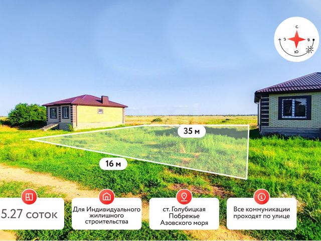 Номер объекта: 538508. Документы готовы к сделке. Продается земельный участок ИЖС 6 соток по ул. Школьной пос. За Родину Темрюкского района. До ближайшего спуска к Азовскому морю всего 800 м. Все коммуникации проходят по меже, за исключением канализации. Посёлок За Родину — лакомый кусок для инвесторов: море рядом, есть коммуникации, туристический поток растёт. Подходит для строительства отелей, баз отдыха и частных домов под сдачу. Звоните пишите и не упустите возможность приобрести земельный участок по очень привлекательной цене.`