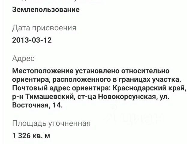 Продаётся земельный участок 20 соток Кореновский район, ст. Раздольная, ул. Степная. Звоните, расскажу подробнее Отличный участок правильной ровной формы — идеально подходит для строительства жилого дома или ведения личного подсобного хозяйства. Площадь — 20 соток Фасад — 30 м Длина — 84 м Подъезд к участку асфальтированный Газ и электричество проходят по улице Удобное расположение: • 14 км до г. Кореновска • Спокойная, жилая улица В станице есть всё необходимое для комфортной жизни: школа детский сад отделение поликлиники множество магазинов Тихое место с развитой инфраструктурой — отличный вариант для строительства дома и проживания за городом. Звоните — отвечу на все вопросы! Если нужно, могу сделать более "продающий" вариант для Авито с акцентом на срочность или инвестиционную привлекательность. Арт. 130001508