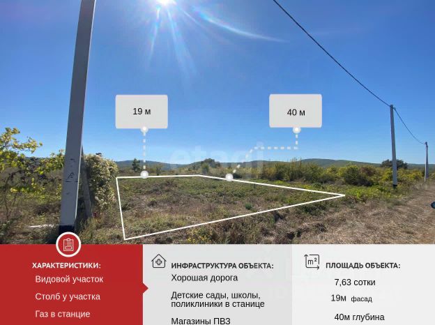 Продается удобный большой участок! Шикарный видовой участок. Газ в станице, столб около участка. Ищете идеальное место для строительства вашего дома мечты? У нас есть то, что вам нужно! Участок правильной прямоугольной формы. В станице есть школы, садики остановки. В шаговой доступности магазины для комфортной жизни. Хороший подъезд к участку, полная цена в договоре, обременений нет. Не упустите шанс стать владельцем этого замечательного участка! Звоните сейчас и узнайте больше!. Дополнительно оплачивается комиссия с покупателя. Код пользователя: 169896 Номер в базе: 9733533