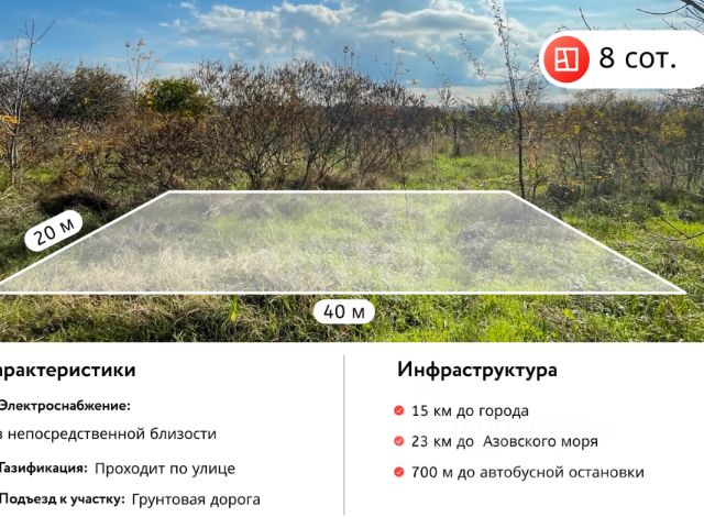 Продается земельный участок площадью 4 сотки в СОТ "Радуга" г. Темрюка! Участок ровный, правильной прямоугольной формы, размеры по фасаду 20 метров, в глубину 20 метров. Категория земель - Земли населенных пунктов. Вид разрешенного использования - Для садоводства и огородничества Участок не подтопляемый. До остановки общественного транспорта и асфальтовой дороги 500 м. До всех социально значимых учреждений в центре города 10 км. В инвестиционном плане участок так же интересен. Один собственник, обременений нет. Успевайте приобрести данный участок, земли больше не становится, это инвестиция в Ваше будущее и будущее Ваших детей.. Дополнительно оплачивается комиссия с покупателя. Код пользователя: 187282 Номер в базе: 11730812 Продаю земельный участок под садоводство в Темрюке.