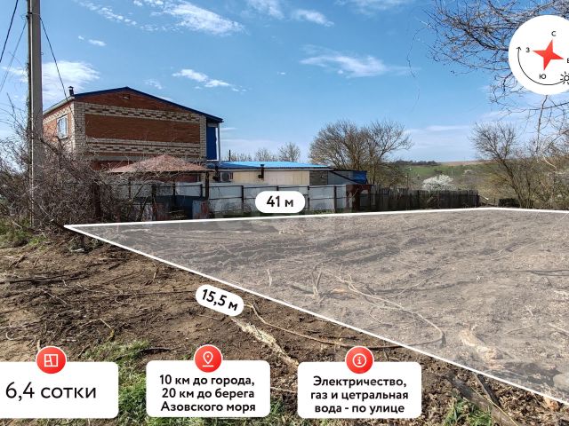 Номер объекта: 538178. ПРОДАЖА УЧАСТКА 15 СОТОК ИЖС В 500 КМ. ОТ АЗОВСКОГО МОРЯ В п. ЗА РОДИНУ. Ширина 30, глубина - 50. Ровный, не подтопляемый, правильной формы. Возможно деление на несколько частей. Все коммуникации проходят по улице. Улица широкая, от грейдирована, с удобным подъездом, застроена частным жилым сектором Посёлок имеет всю необходимую ин-ру.