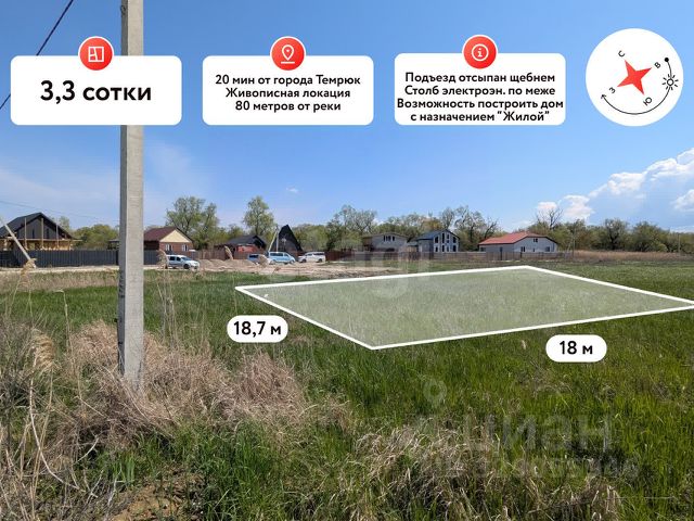 В продаже земельный участок в очень перспективном и живописном месте площадью 3,33 сот. Темрюкского района! 80 метров от реки! Земельный участок площадью 3,33 сот. Имеет правильную форму. Параметры участка: фасад 18 м, глубина 18,7 м. Участок ровный, без уклона. Коммуникации: электроснабжение по меже, водоснабжение скважина, канализация септик. Транспортная доступность: Азовское море (ст. Голубицкая) в 30 км, Чёрное море (г. Анапа) в 40 км, Крымский мост в 65 км, г. Краснодар в 160 км. Земельный участок находится в прекрасном и тихом месте в непосредственной близости к реке Казачий Ерик, на территории имеется зона для беседки, спуск к воде, лодочная пристань. В 900 метрах асфальтированная дорога (работы идут полным ходом), по дороге к участку находится долина лотосов. Все эти факторы делают данный земельный участок крайне перспективным и инвестиционным! Допустимо строительство ЖИЛОГО дома с возможностью постоянной регистрации! Заинтересовало предложение? Звоните!. Дополнительно оплачивается комиссия с покупателя. Код пользователя: 187291 Номер в базе: 12314957