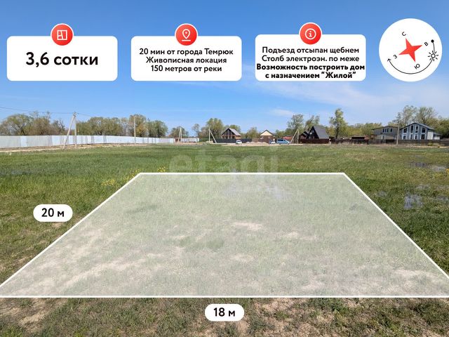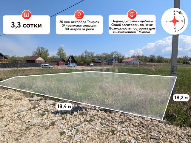 В продаже земельный участок в очень перспективном и живописном месте площадью 3,6 сот. Темрюкского района! 150 метров от реки! Земельный участок площадью 3,6 сот. Имеет правильную форму. Параметры участка: фасад 18 м, глубина 20 м. Участок ровный, без уклона. Коммуникации: электроснабжение по меже, водоснабжение скважина, канализация септик. Транспортная доступность: Азовское море (ст. Голубицкая) в 30 км, Чёрное море (г. Анапа) в 40 км, Крымский мост в 65 км, г. Краснодар в 160 км. Земельный участок находится в прекрасном и тихом месте в непосредственной близости к реке Казачий Ерик, на территории имеется зона для беседки, спуск к воде, лодочная пристань. В 900 метрах асфальтированная дорога (работы идут полным ходом), по дороге к участку находится долина лотосов. Все эти факторы делают данный земельный участок крайне перспективным и инвестиционным! Допустимо строительство ЖИЛОГО дома с возможностью постоянной регистрации! Заинтересовало предложение? Звоните!. Дополнительно оплачивается комиссия с покупателя. Код пользователя: 187291 Номер в базе: 12315074
