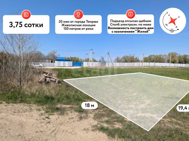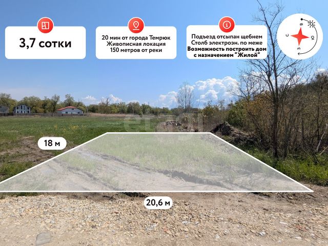 В продаже земельный участок в очень перспективном и живописном месте площадью 3,75 сот. Темрюкского района! 150 метров от реки! Земельный участок площадью 3,75 сот. Имеет правильную форму. Параметры участка: фасад 20,6 м, глубина 18 м. Участок ровный, без уклона. Коммуникации: электроснабжение по меже, водоснабжение скважина, канализация септик. Транспортная доступность: Азовское море (ст. Голубицкая) в 30 км, Чёрное море (г. Анапа) в 40 км, Крымский мост в 65 км, г. Краснодар в 160 км. Земельный участок находится в прекрасном и тихом месте в непосредственной близости к реке Казачий Ерик, на территории имеется зона для беседки, спуск к воде, лодочная пристань. В 900 метрах асфальтированная дорога (работы идут полным ходом), по дороге к участку находится долина лотосов. Все эти факторы делают данный земельный участок крайне перспективным и инвестиционным! Допустимо строительство ЖИЛОГО дома с возможностью постоянной регистрации! Заинтересовало предложение? Звоните!. Дополнительно оплачивается комиссия с покупателя. Код пользователя: 187291 Номер в базе: 12314998