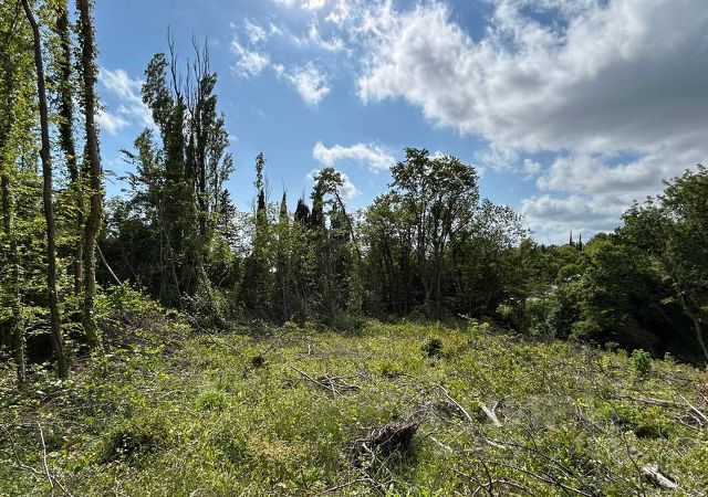 ВОКРУГ УЧАСТКА: спуск от парковки до дороги к морю чуть больше 15 метров, там речка .. от неё прохлада в самое жаркое время. Дубы выше 30 (!) метров, платаны и инжир окружают участок и засыпают склоны листьями размером с лист А4, под этим ковром - что не старая коряга, то ведро опят. И да - там же весной черемша.