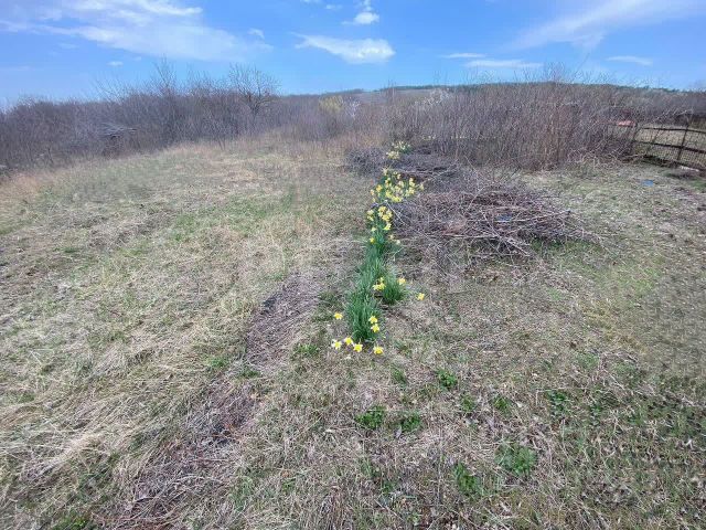 Участок размечен, по бокам небольшая ограда, по фасаду вдоль дороги - 16 метров, 24 метра в глубину. НЕ ЗАТАПЛИВАЕТСЯ, так как находится на вершине горы. Абсолютно ровный, плодородная почва без камней.