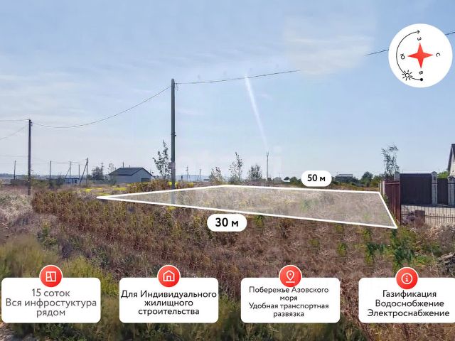 Продаётся земельный участок. Площадь участка 10.5 сот. Участок разработан. Категория земли личное подсобное хозяйство. Электричества нет. Воды нет. Газа нет. К объекту идёт асфальтовая дорога.Участок угловой, находится возле азовского моря, рядом рынок, магазины, дома отдыха ,участок не потопляемый, до берега моря одна минута ходьбы. на все интересующие вопросы подробно отвечу.ЗВОНИТЕ! ID объекта: 617336