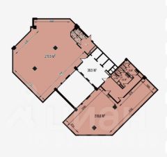 Общая площадь этажа 582.10 кв.м. Этаж состоит из двух офисных блоков.