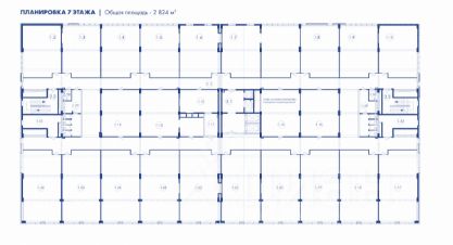 Сдаваемая площадь 12 172 кв.м, расположена на 1,2,5,6,7 этажах. Площадь этажа 2 300 - 2 800 кв.м.
