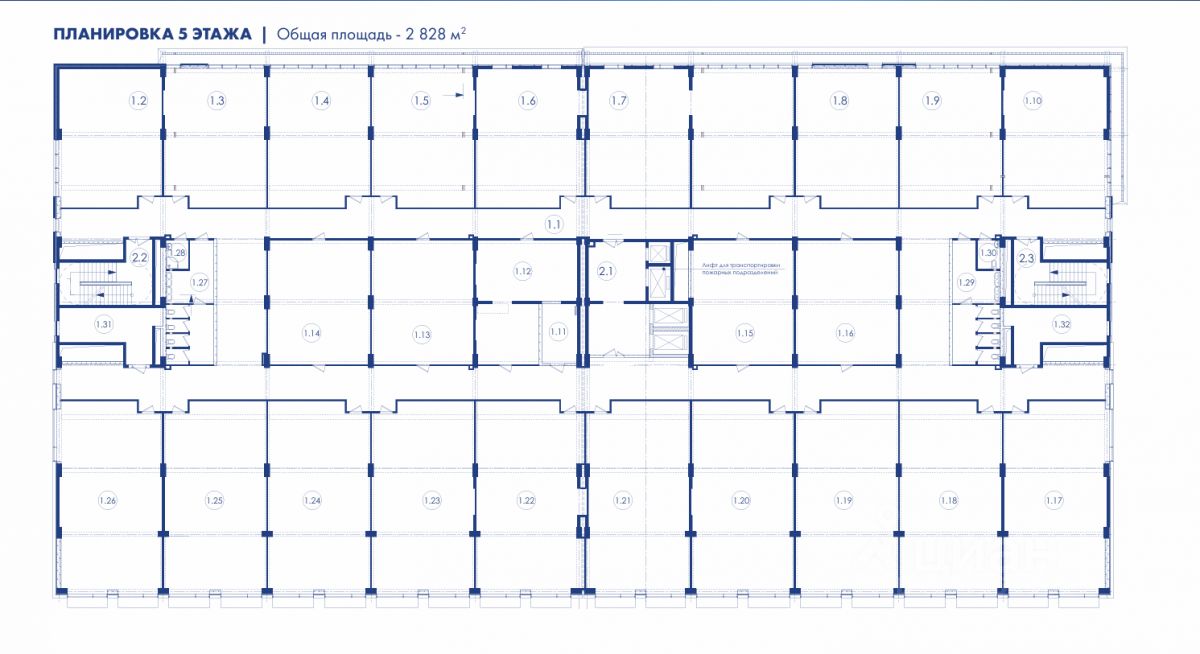 Сдаваемая площадь 2 828 кв.м, расположена целиком на 5-м этаже