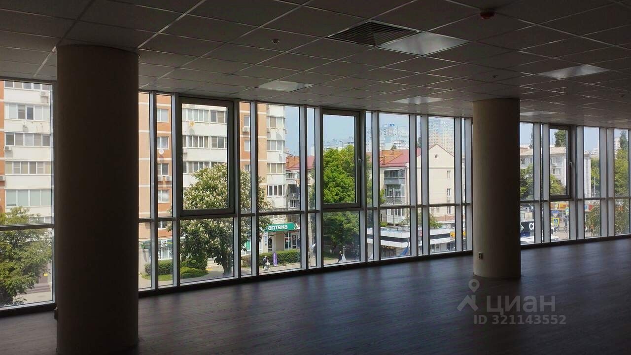 Площадь 180,47 кв.м., помещение свободной планировки с колоннами, высокими потолками, отдельный кабинет, санузел. Панорамное остекление по фронтону дает потрясающее освещение и обзор.