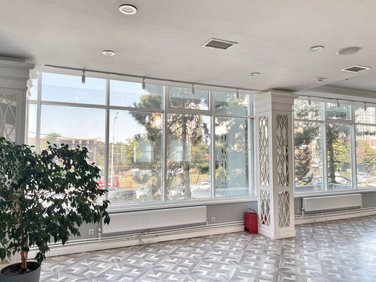 Свободная планировка позволяет адаптировать помещение для различных целей, таких как офис, магазин, выставочный зал или представительство. В помещении есть собственный санузел, кабинет, серверная и зона приёма пищи.