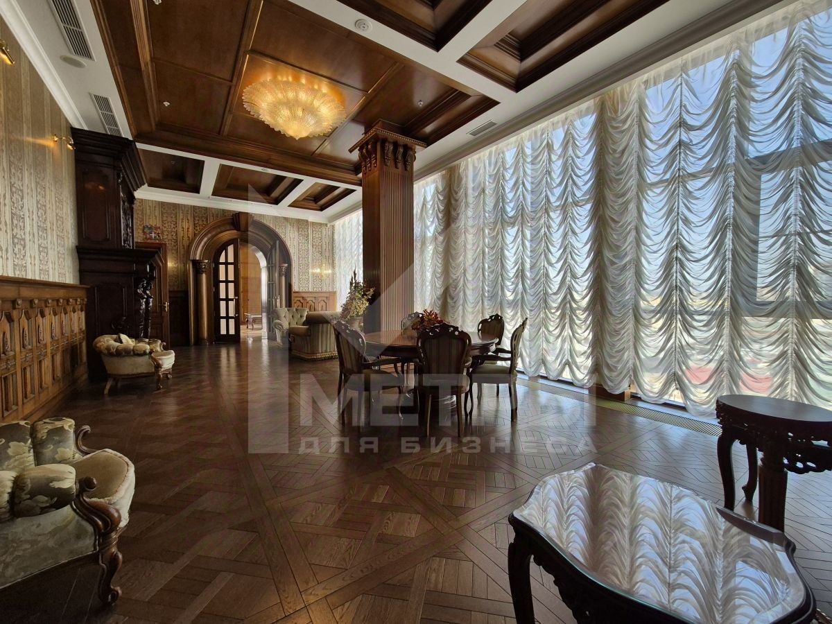 натуральное дерево, художественная резьба, декоративные панели;просторные кабинеты и переговорные комнаты;каминный зал с богатой отделкой;изысканная мебель и элементы декора;потолки с декоративными нишами и массивными люстрами.Помещение идеально подойдёт для размещения представительства крупной компании, офиса топ-менеджмента, банка и др.