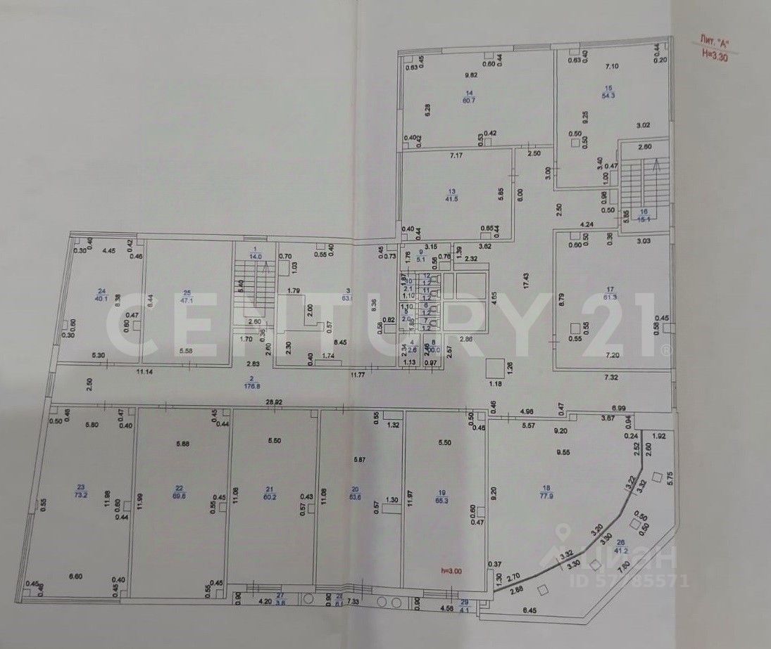 На этаж заходит лифт, лестница и дополнительный пожарный выход, пожарная и охранные сигнализации.