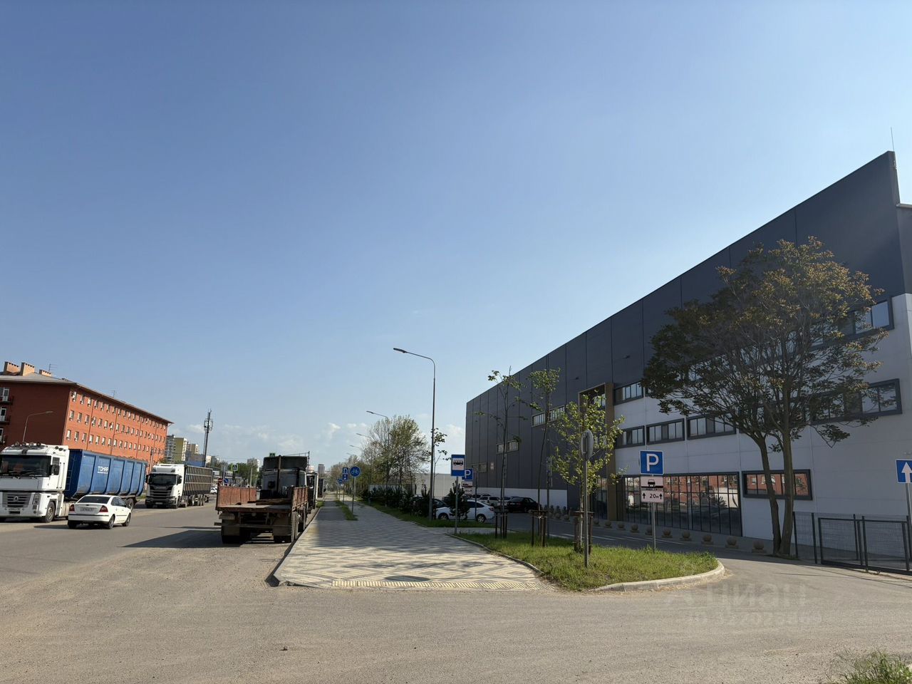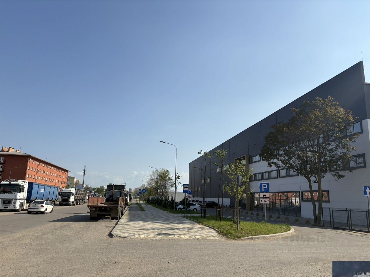 Вместительная парковка для легкового и грузового коммерческого транспорта на охраняемой территории складского комплекса