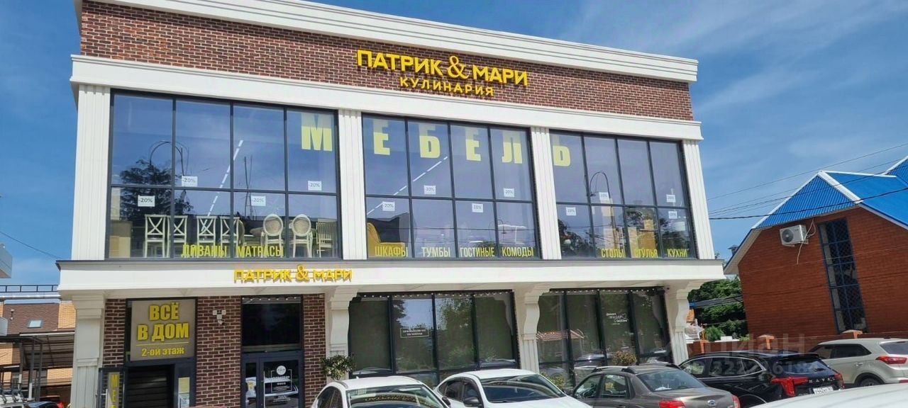 На первом этаже располагается Патрик и Мари, соседнее здание: Чижик, Аптека Апрель, салон красоты, на втором этаже магазины Фикс Прайс, Магнит Косметик.
