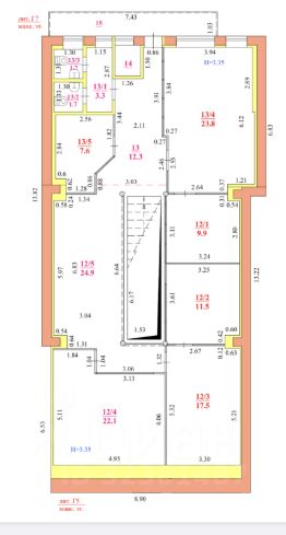 Предлагаем в аренду помещения с современным ремонтом в центре города напротив Администрации площадью от 7,6 кв.м. На плане свободные помещения 12/2 (11,5 кв.м.), 12/3 (17,5 кв.м.), 13/5 (7,6 кв.м.). На этаже два санузла, выход на балкон. Помещения оборудованы встроенной системой кондиционирования и вентиляции. В арендную плату включено всё, кроме уборки: коммунальные платежи, отопление, охрана, интернет. Имеется возможность доступа в помещения не зависимо от режима работы других арендаторов.