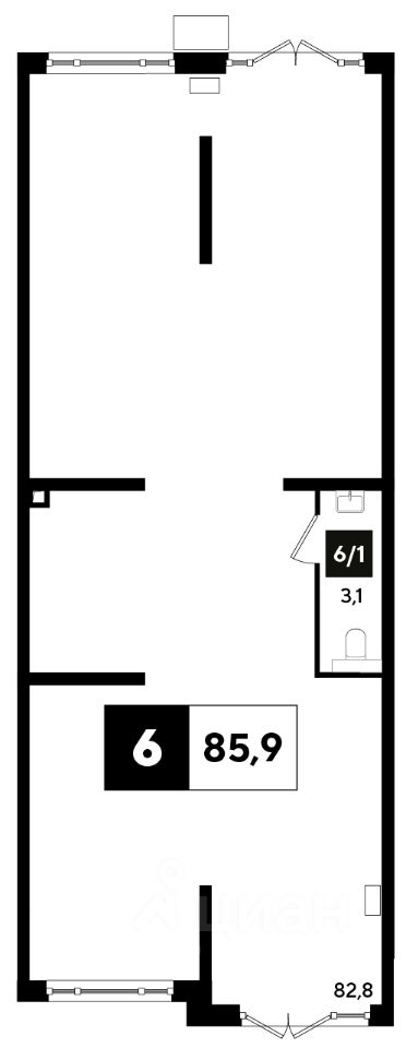 Предлагаем в аренду помещение площадью 85,9 м² на первом этаже 16-этажного многоквартирного дома с высоким пешеходным и автомобильным трафиком.
