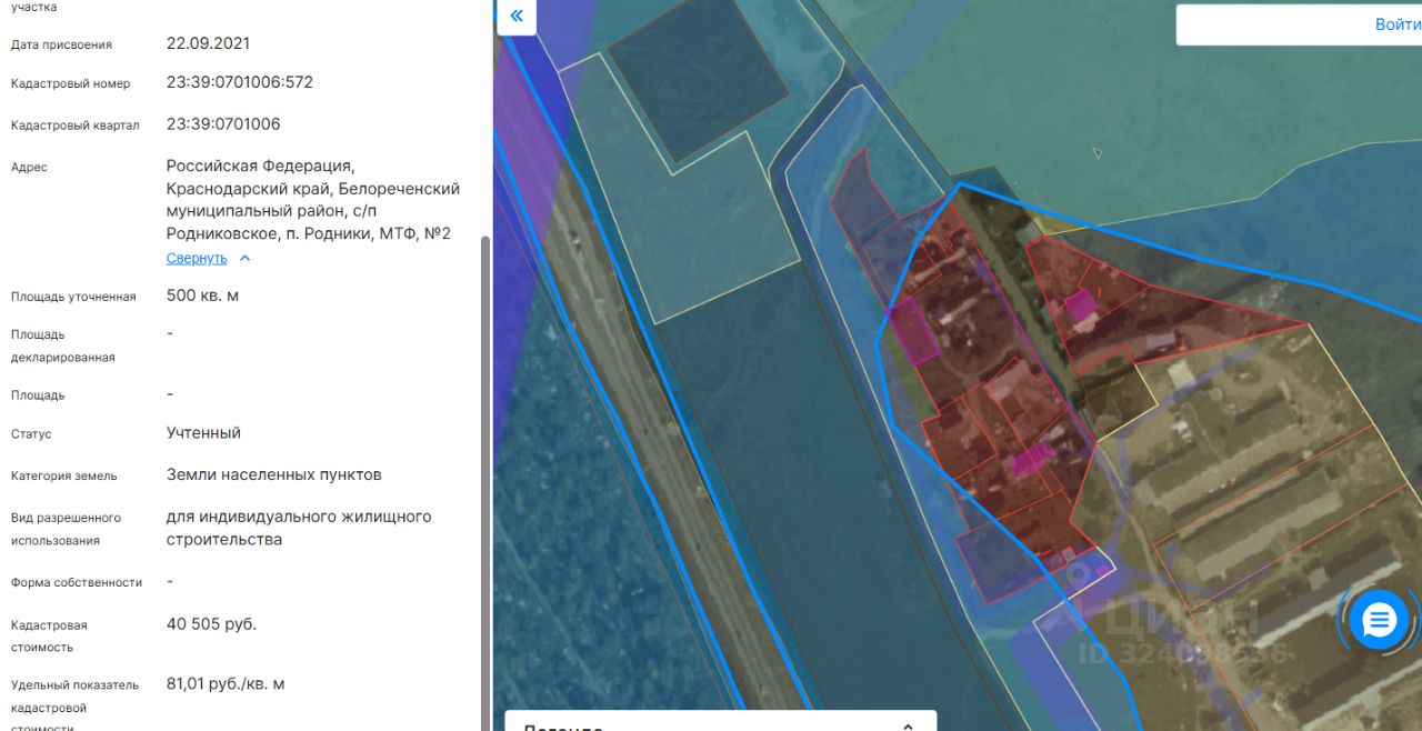Земельный участок, расположенный по адресу:Российская Федерация, Краснодарский край, Белореченский муниципальный район, Родниковское с/п., п. МТФ 2, площадью 500 кв.м., кадастровый номер 23:39:0701006:572, категория земель земли населенных пунктов, разрешенный вид использования для индивидуального жилищного строительства